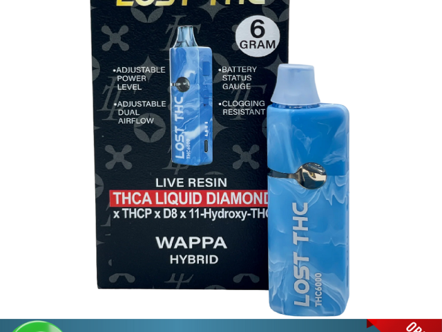 Wappa Lost THC THCA Diamond Disposable, a 6-gram powerhouse designed for enthusiasts seeking a premium and dynamic vaping experience. Beyond its substantial capacity, this state-of-the-art device boasts advanced indicators and a carefully crafted blend of cannabinoids, promising a vaping adventure that not only satisfies but excites the senses.